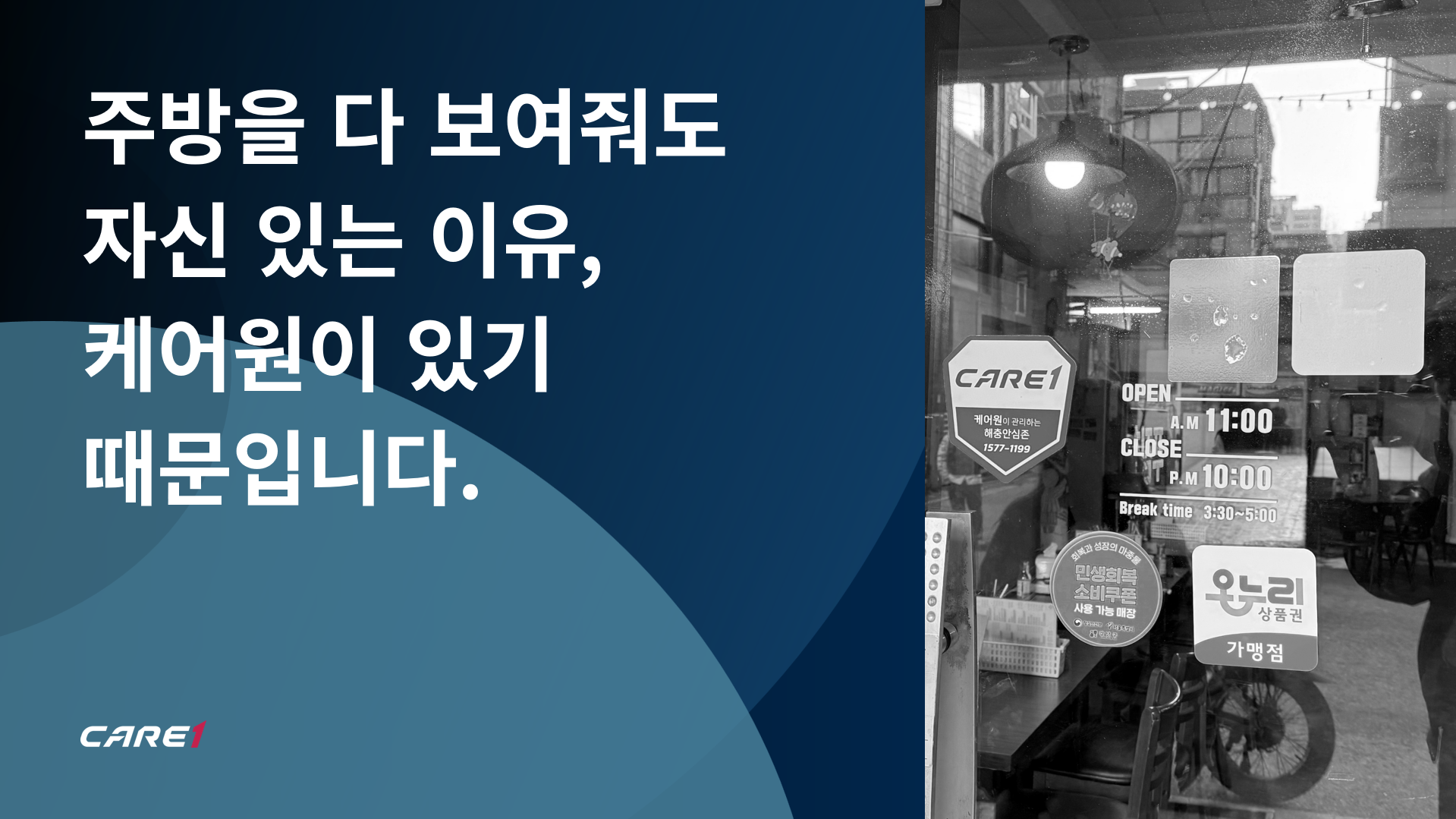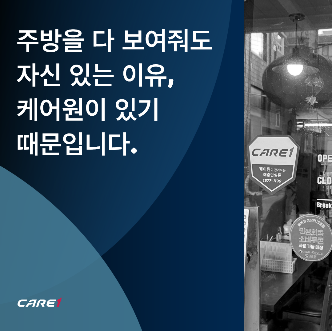케어원은 단순한 방역업체가 아니라 함께 가게를 지켜주는 파트너이기 때문입니다.