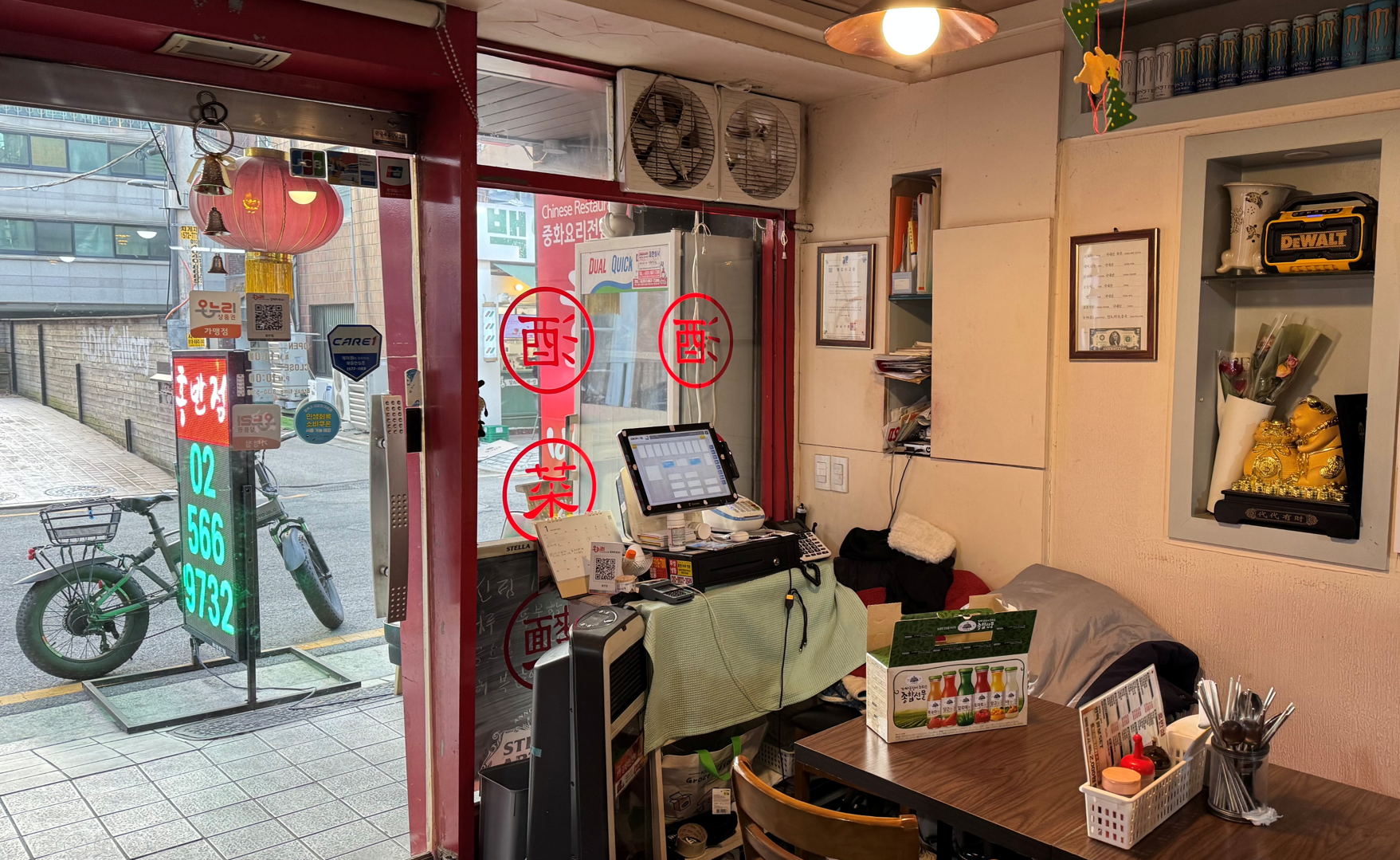 이미지 캡션: 케어원의 지속적인 공관 관리로, 매장 외부에서도 청결한 첫인상을 유지하고 있는 홍반점의 전경입니다.