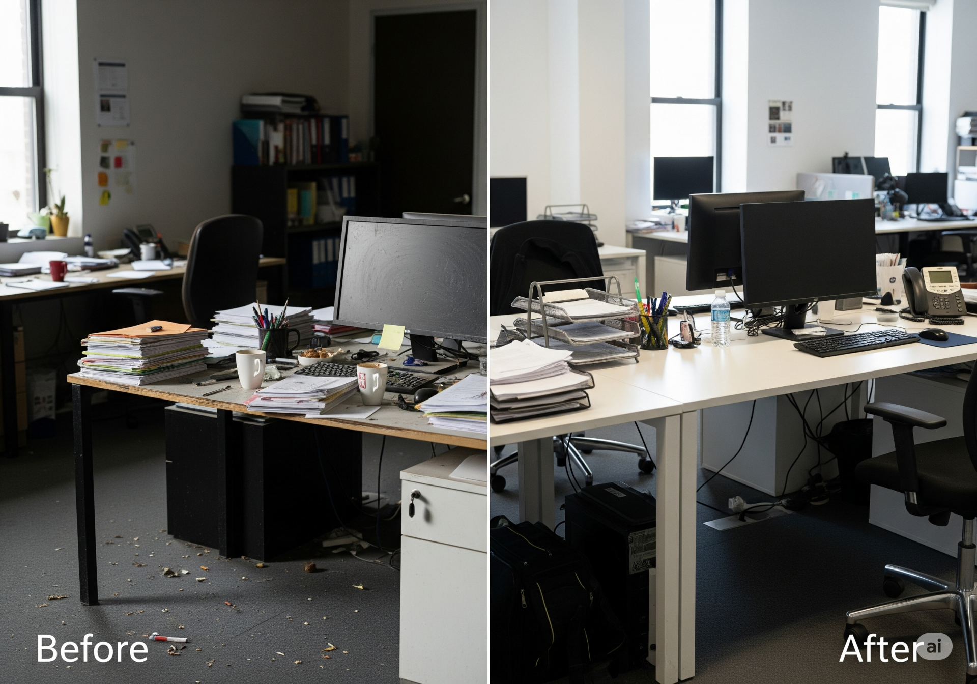 청결하고 정돈된 사무실은 스트레스를줄이고 집중력을 높여, 업무 효율과성과 향상으로 이어집니다.