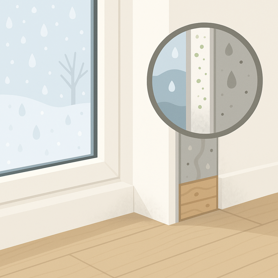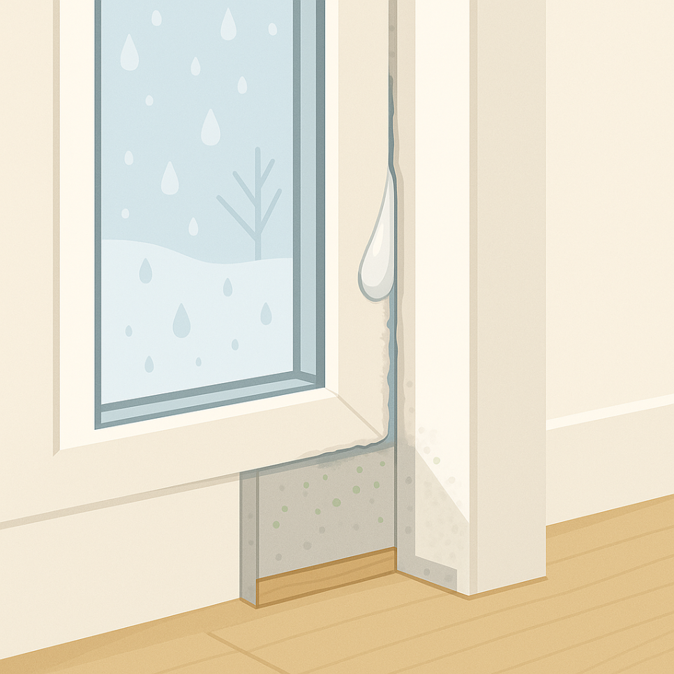 눈에 보이는 결로는 이미 내부 틈에서 더 많은 습기가 쌓였다는 신호예요.